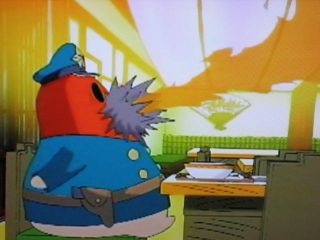 そうとは知らずに出来上がったラーメンを署長に出すカワサキ。