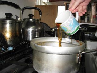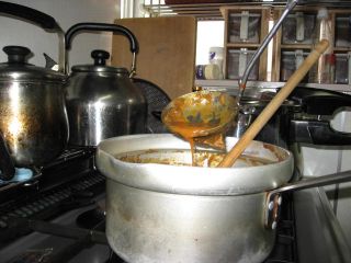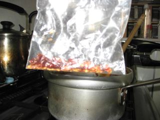 5.水を入れて材料に火が通るまで煮込む。沸騰したらアクをとる。