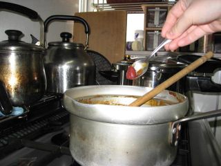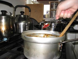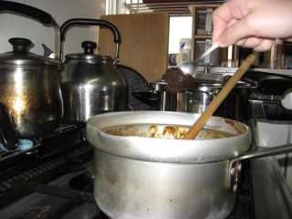 6.いったん火を止めて、ルーを入れる。再び火をつけて弱火でしばらく煮込む。